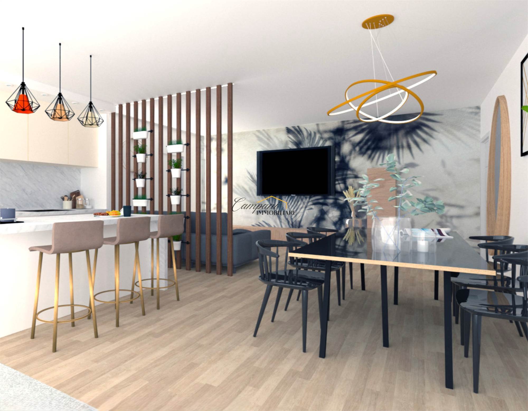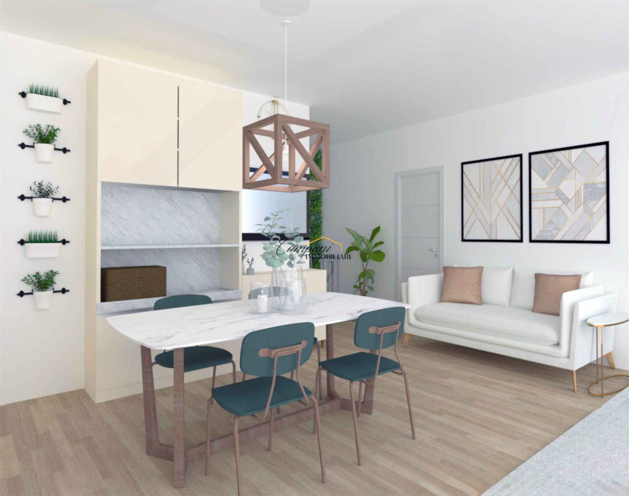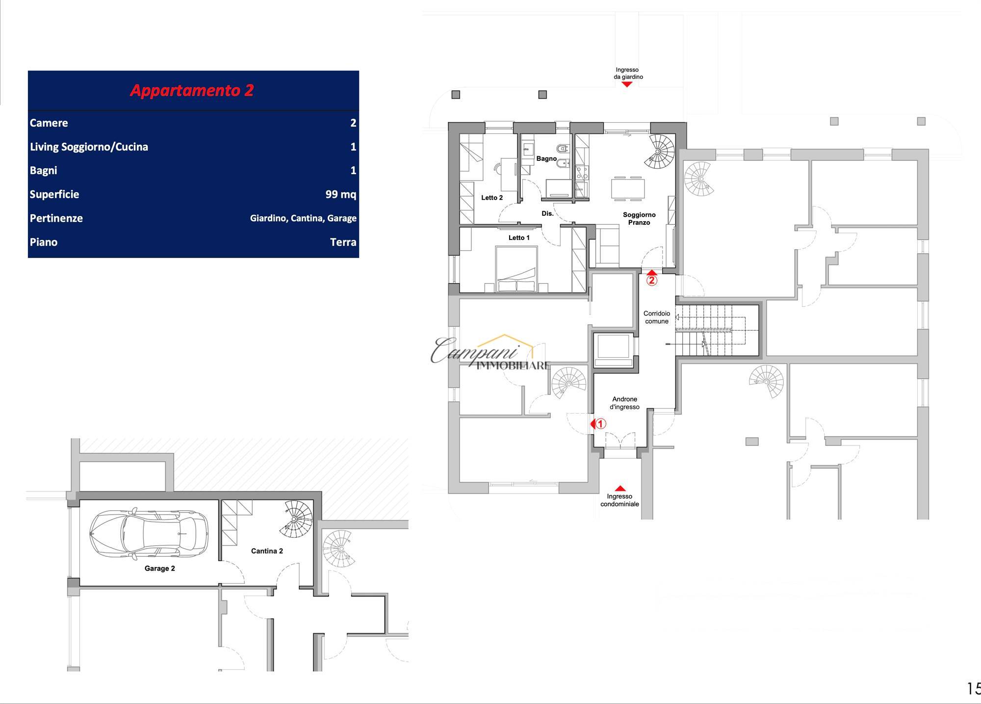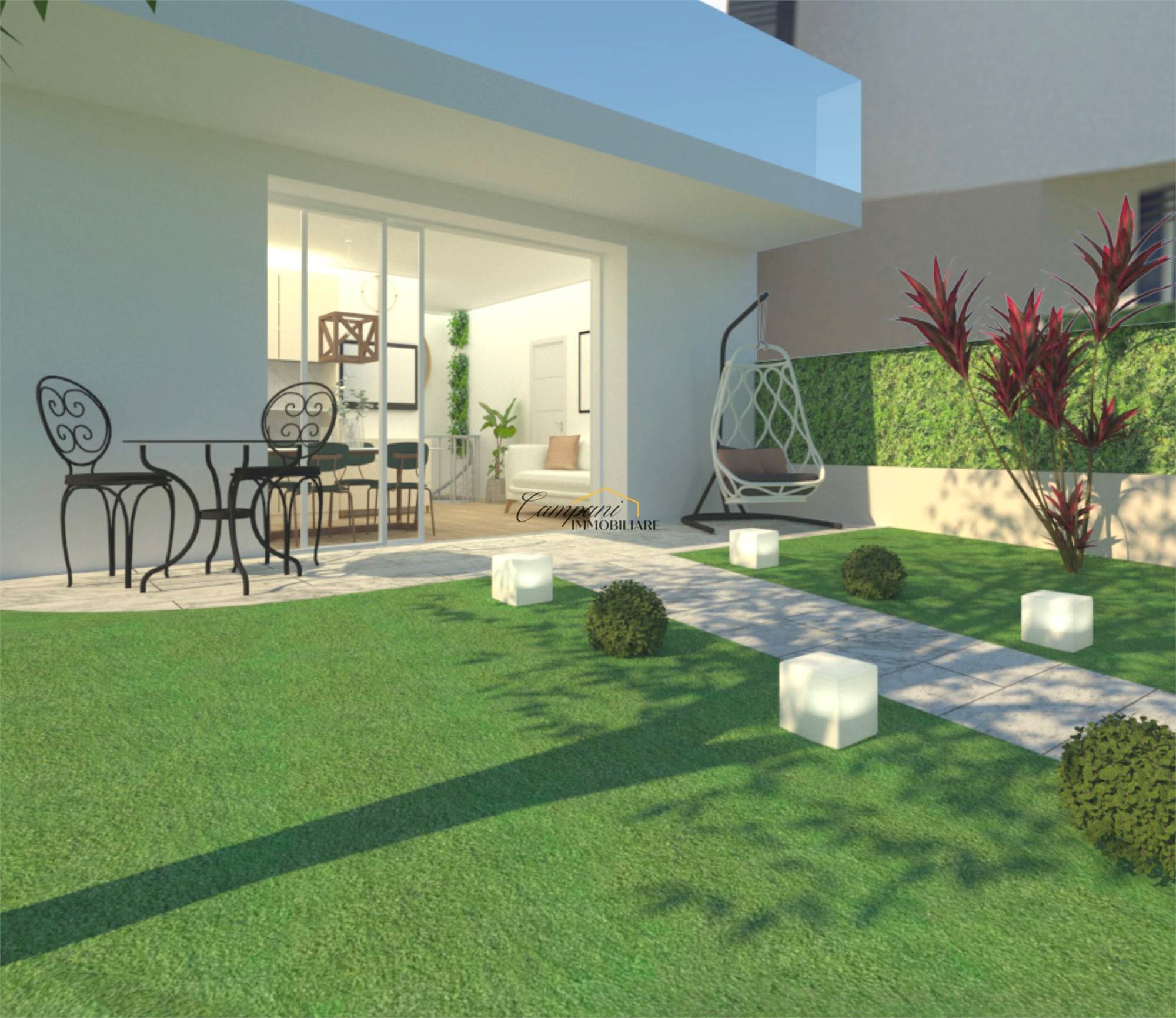 L'immobile, classificato in classe A4 e dotato di tutti i comfort più moderni, è composto da ingresso su soggiorno con cucina open - space, disimpegno, camera matrimoniale, cameretta e bagno. Scendendo dalle scale, interne all'appartamento, si arriva direttamente all'ampia cantina collegata al garage privato. All'esterno troviamo il giardino esclusivo di circa 80 mq con l'ingresso indipendente.