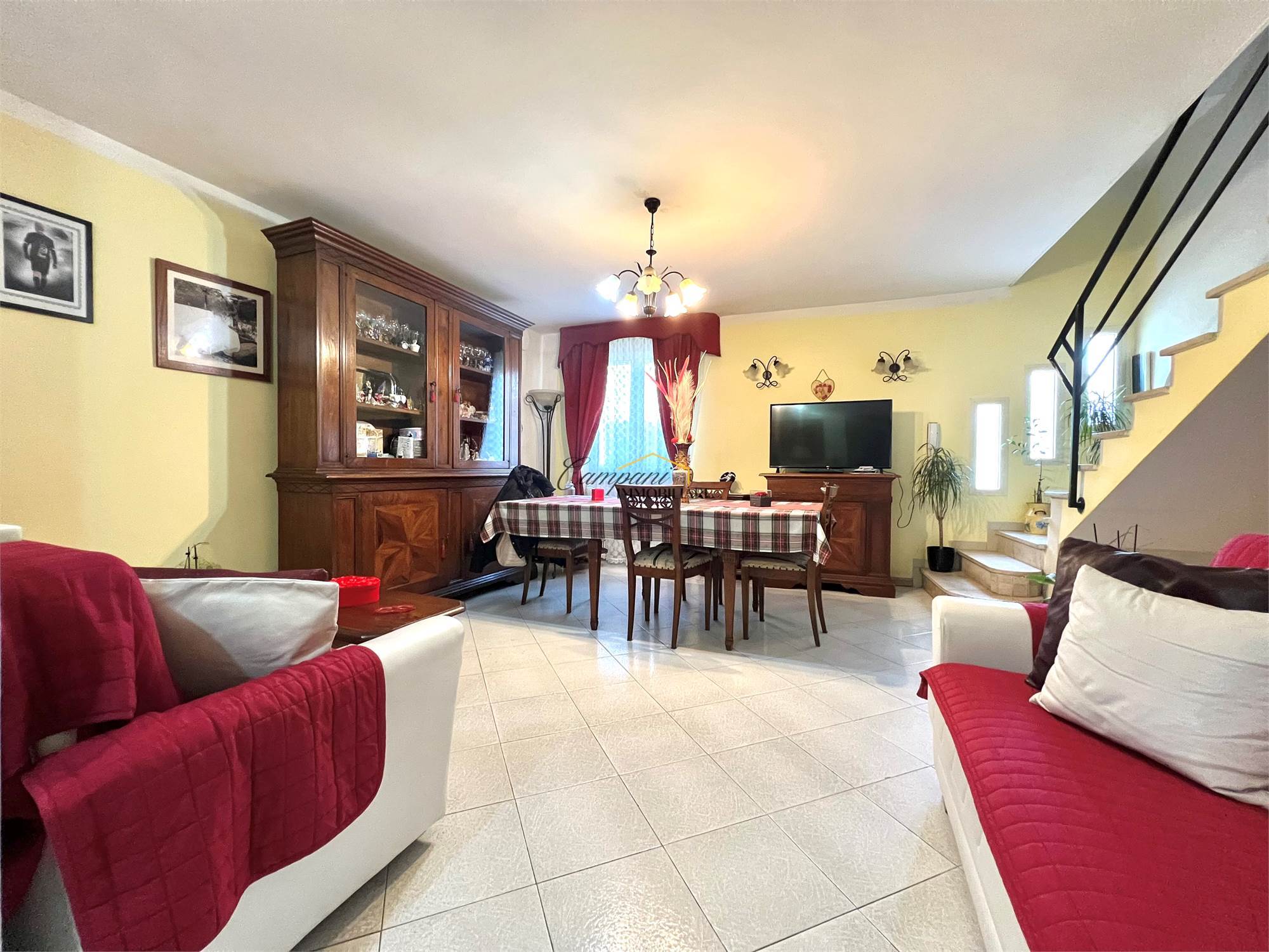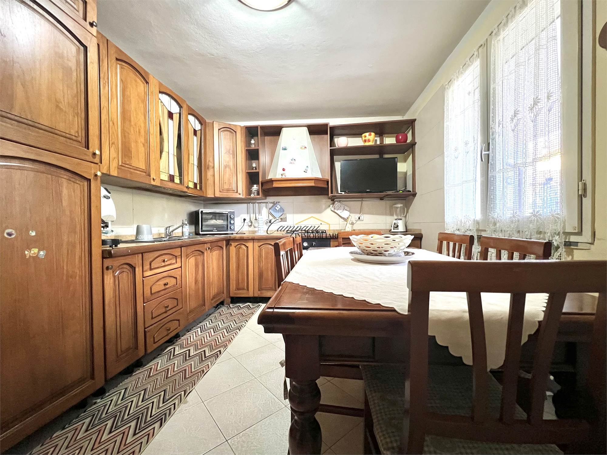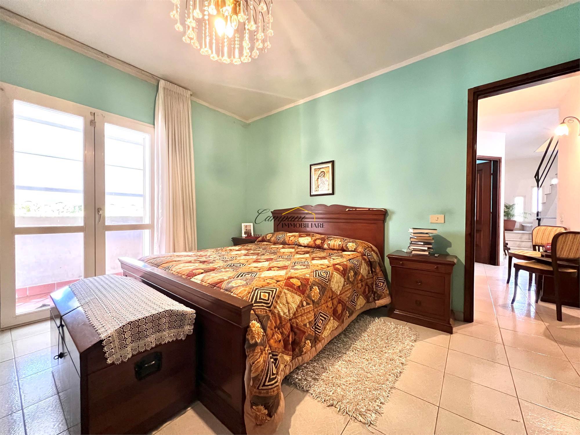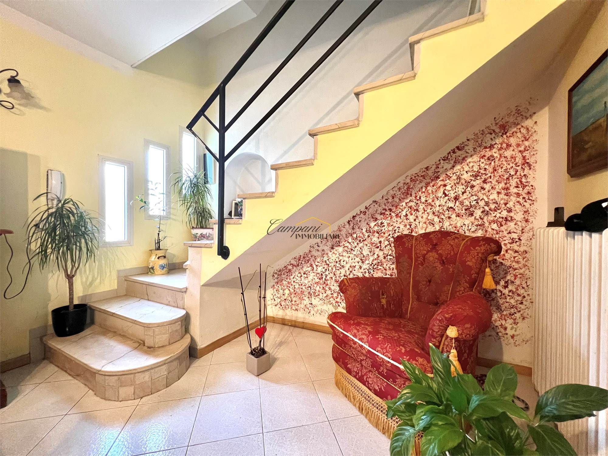 L'immobile, ristrutturato nel '97, è composto al piano terra da ingresso, ampio soggiorno, cucina abitabile e bagno/lavanderia esterno, salendo le scale al primo piano troviamo il disimpegno della zona notte, due camere matrimoniali di cui una con balcone e una con grande terrazzo e il bagno. Al secondo e ultimo piano mansardato è presente una terza camera matrimoniale, un bagno e un'ulteriore stanza con gli attacchi predisposti per una seconda cucina, ideale per creare un mini appartamento separato. All'esterno è presente il giardino di circa 150 mq, un ampio porticato e il garage.