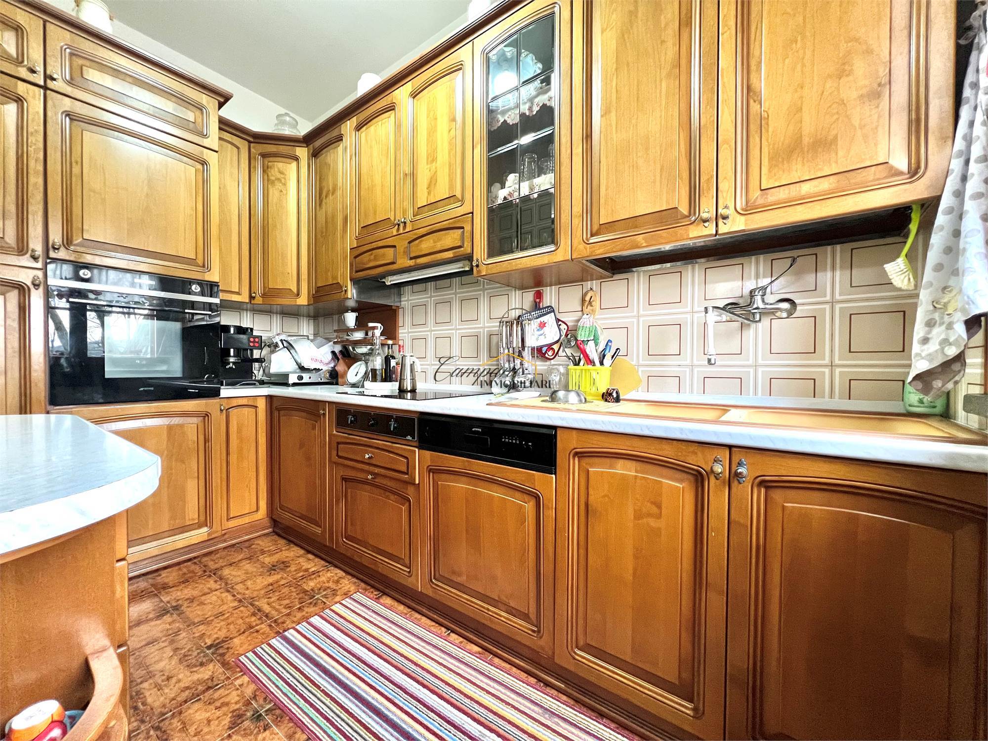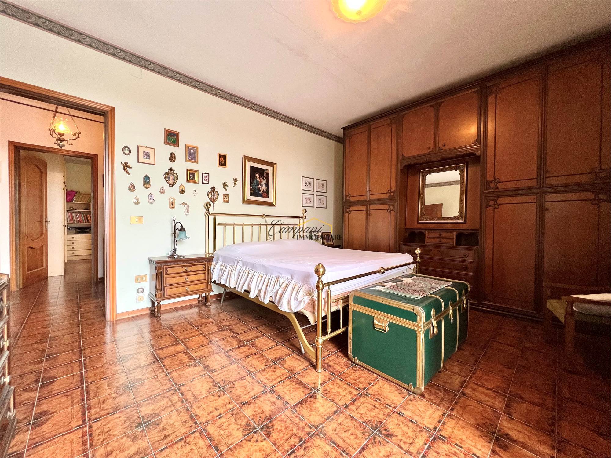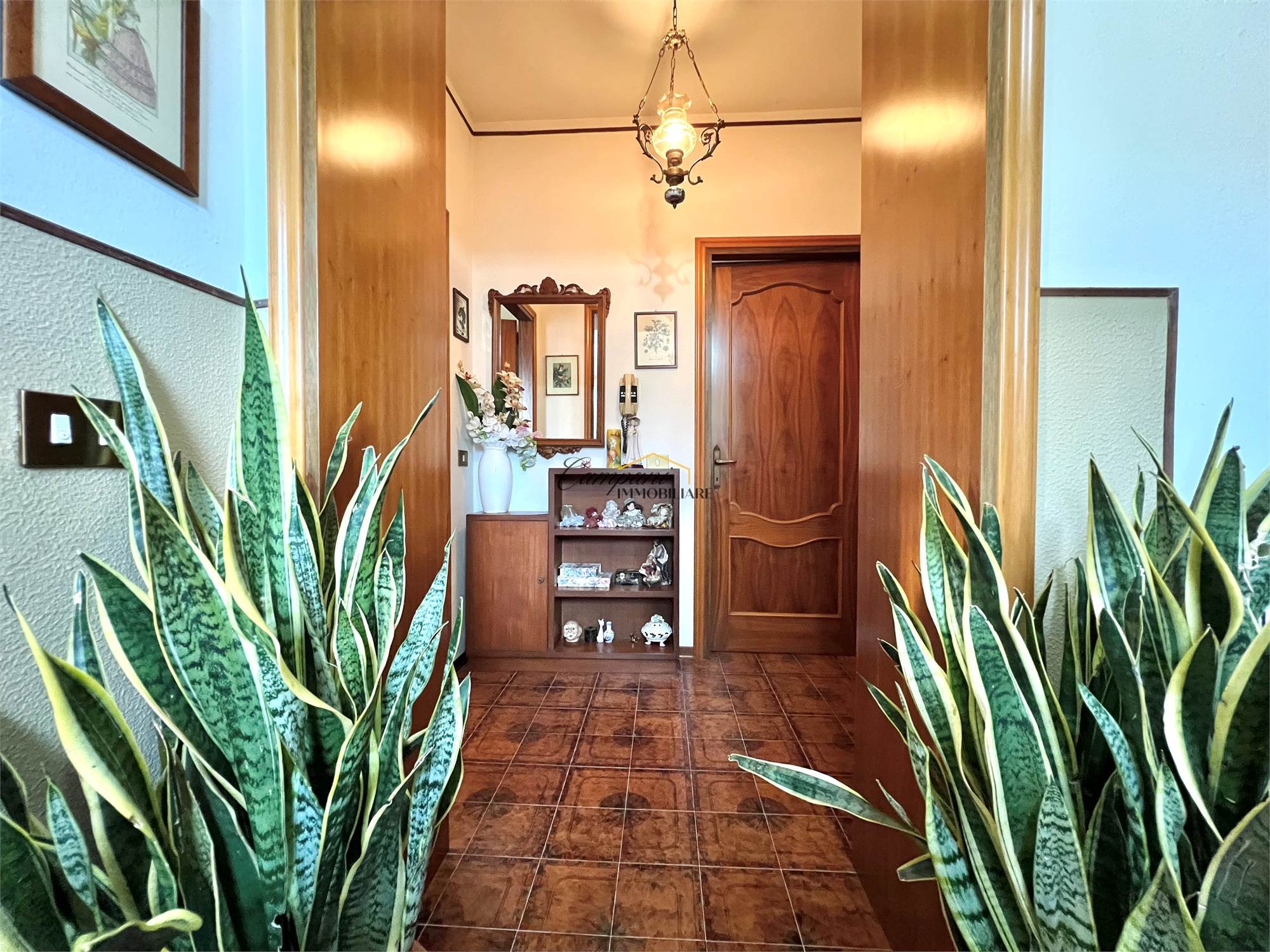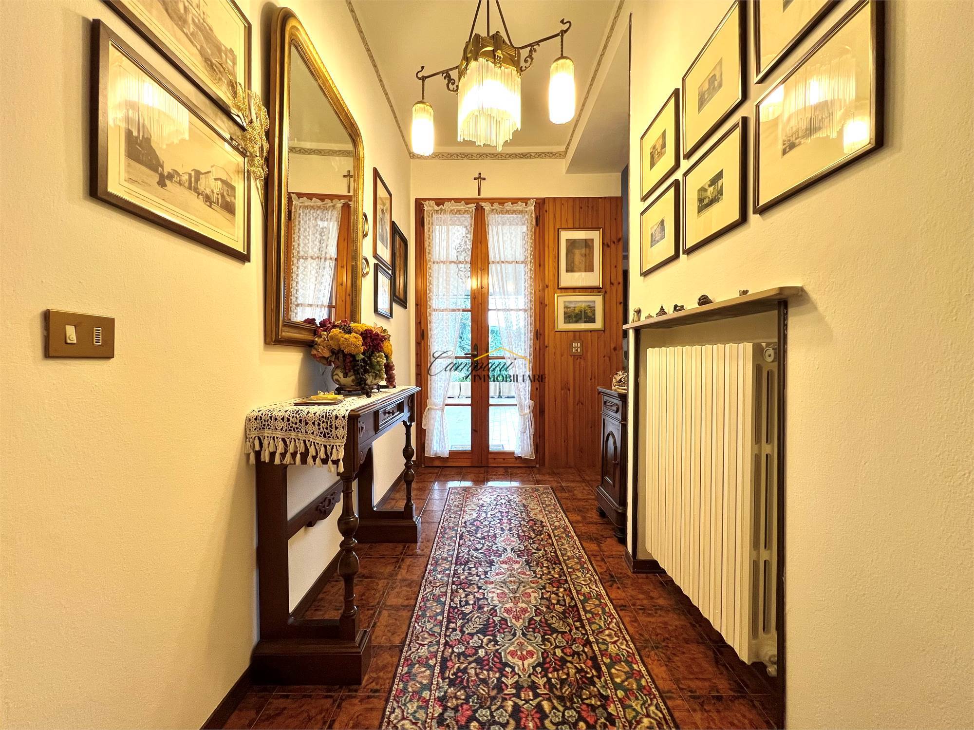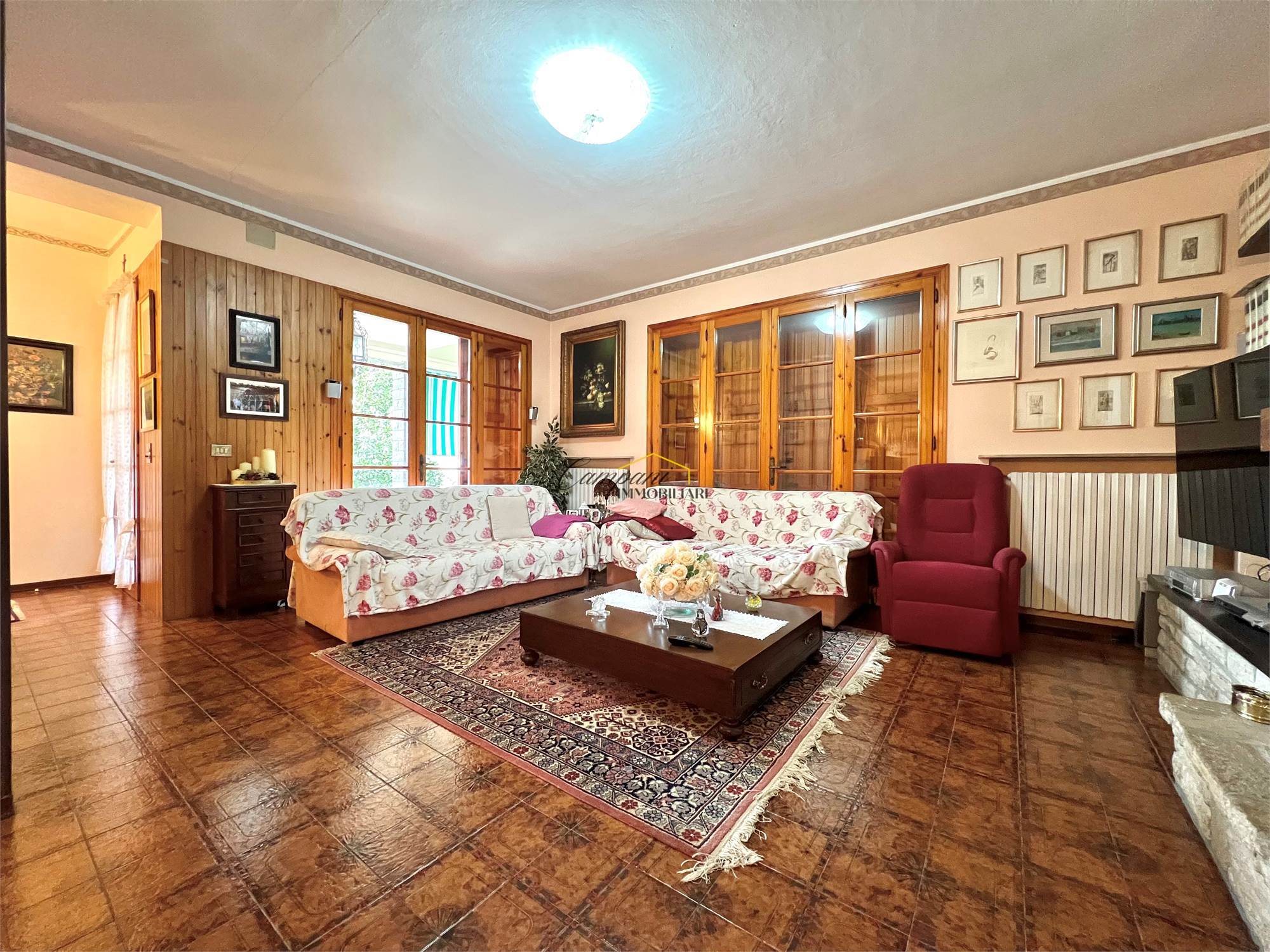 L'immobile, suddiviso in tre livelli, è composto al piano rialzato da un ampio portico di oltre 40 mq, ingresso, soggiorno doppio con camino con scambiatore di calore, sala da pranzo, cucina, disimpegno, camera da letto matrimoniale e bagno. Al primo piano troviamo il disimpegno della zona notte, due camere matrimoniali di cui una con terrazzo, una cameretta e il secondo bagno. Il piano semi - interrato si apre su una caratteristica taverna anch'essa con camino, un bagno, la cucina, tre stanze multiuso, una cantina e il locale tecnico.