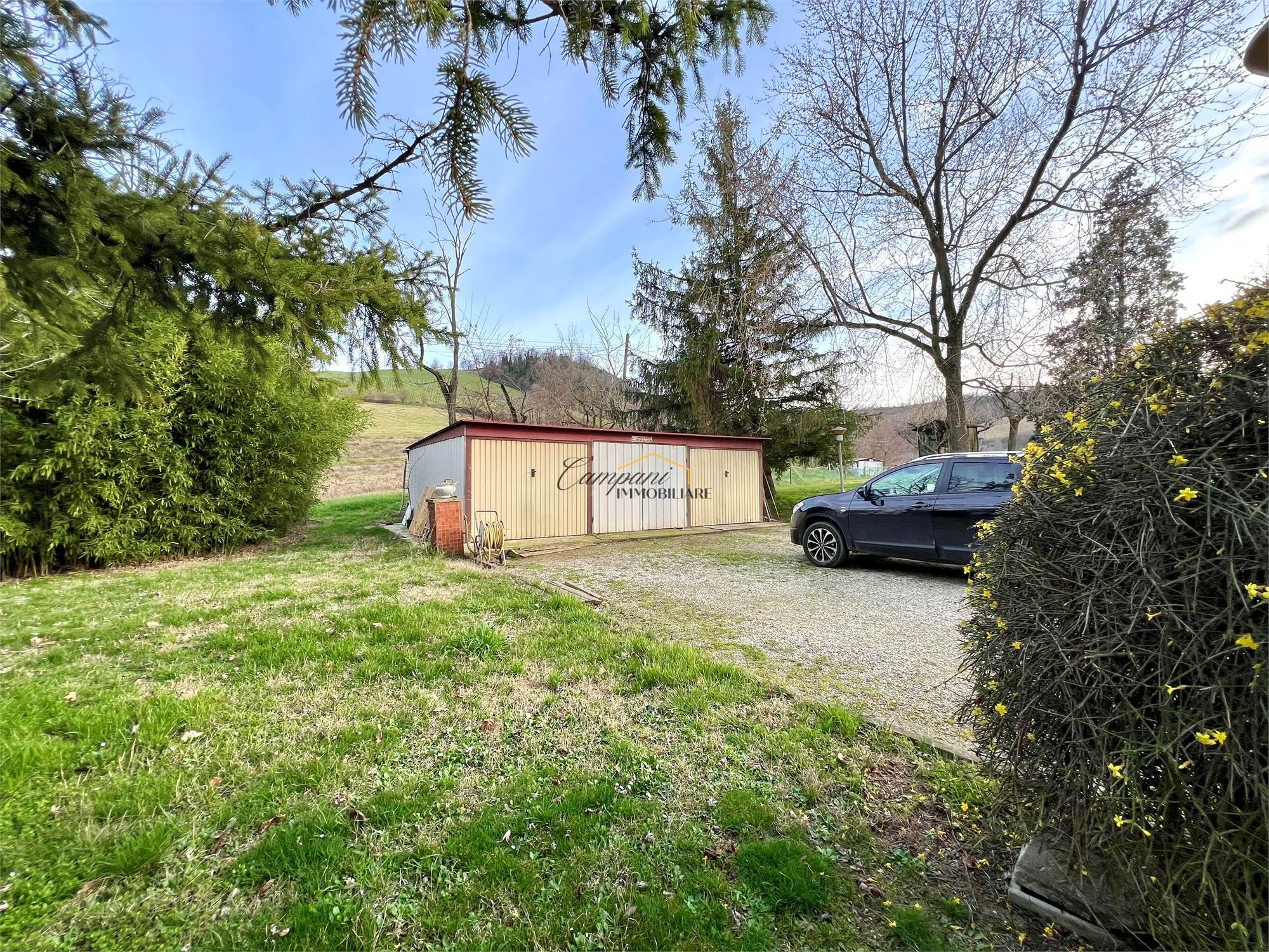 All'esterno della casa, circondata dal verde e dalla tranquillità, troviamo il giardino di pertinenza di quasi 3.000 mq con irrigazione, un garage triplo, un deposito a corpo staccato e il terreno agricolo.